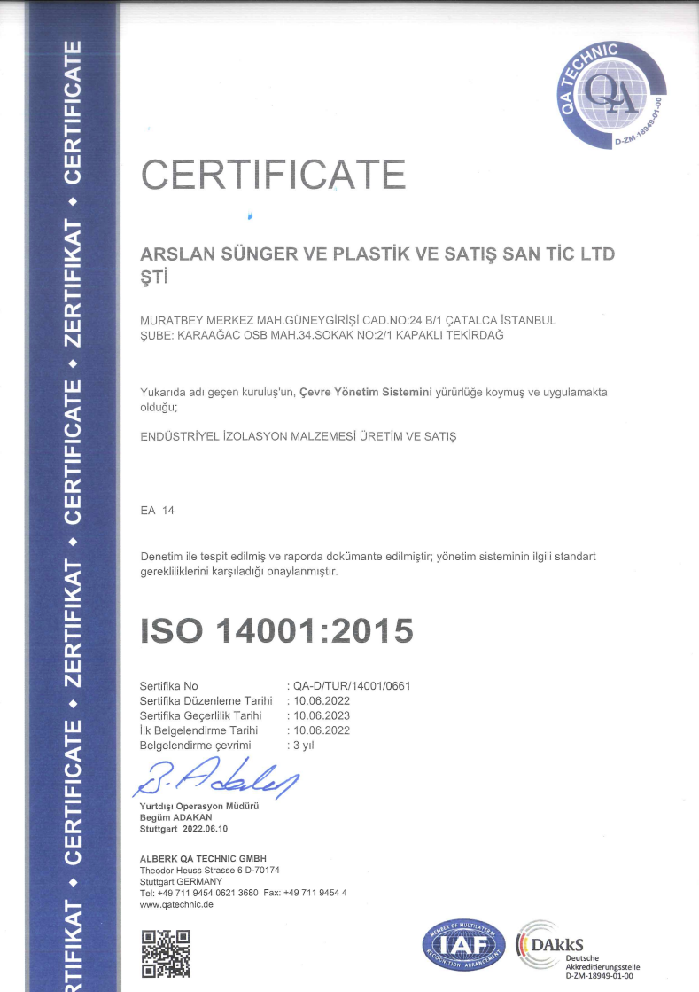 Arslan Sünger, Çevre Yönetim Sistemi vasıtasıyla çevresel etkiyi azaltmaya kararlıdır. kaynakların kullanılma biçimlerinin uzun vadeli sonuçlarını da göz önünde bulundurarak tasarlanan üretim proseslerimizle, gelecek nesillere olumsuz etkiyi minimuma indirme gayreti içerisindeyiz. Kaynağında ayrıştırma ve geri dönüşüm proseslerimiz de sürdürülebilirlik çalışmalarımıza katkı sağlamaktadır.